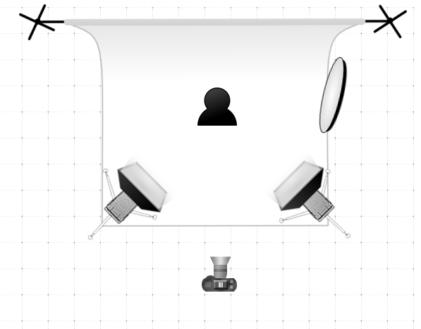 The setup is evidenced by taking a look at the chainring on the crank. You'll notice two nearly identical catch lights on the top left and right edges of the side view image. In the head on shot, take a look at the symmetrical and even shadows on the floor on either side of the front wheel. These are clues to the location and types of lighting used.